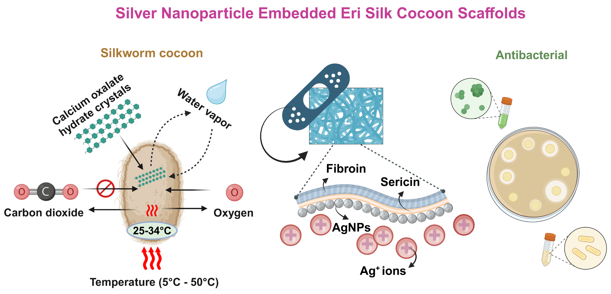 87- Multifunctional silver nanoparticle embedded eri silk cocoon scaffolds against burn wounds-associated infection (Link) (pdf)